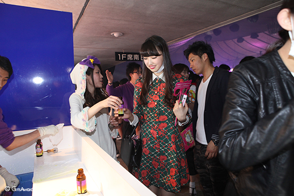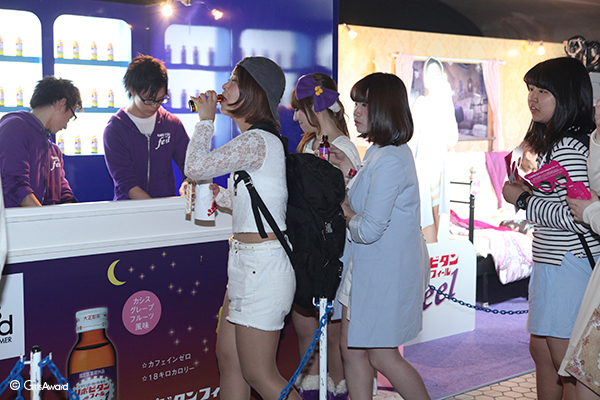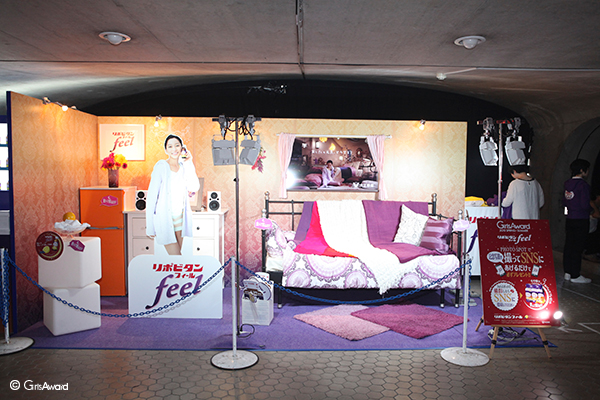 ブースでは杏さんのCMでお馴染みのリポビタンフィールの試飲や、記念撮影をしてくれた方にお持ち帰り用の3本入りパックをプレゼント♪